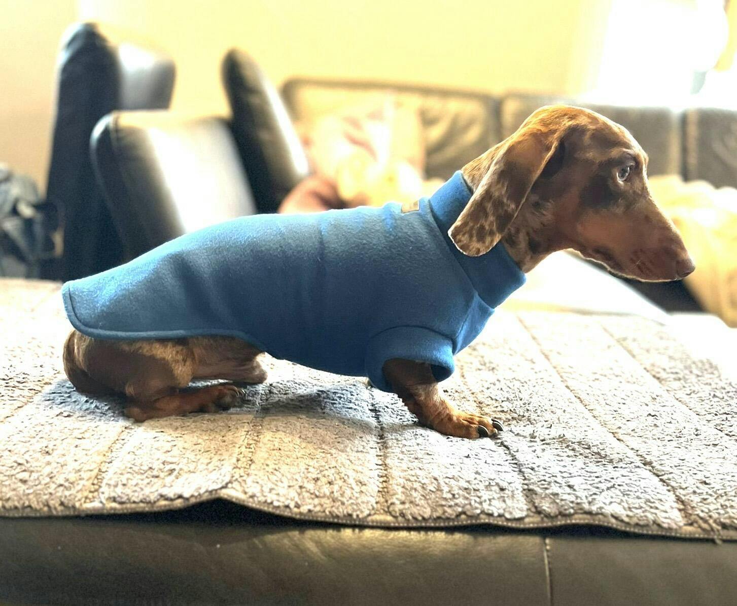 Give your dachshund a casual yet chic look with our Jeans Blue Fleece Pullover. Made of 100% PL, this pullover is designed for ease and comfort, perfect for layering or solo wear.